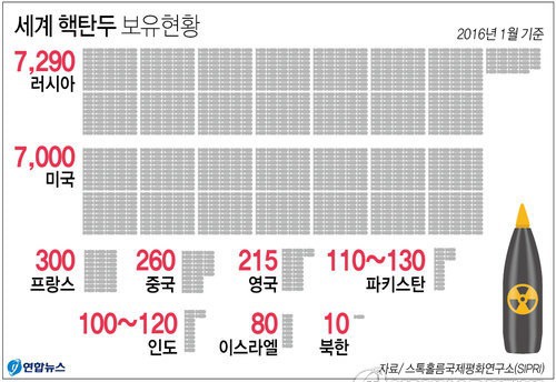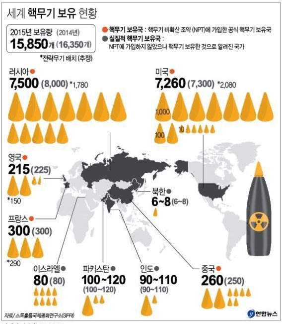 <2016년 핵무기 보유현황, 그림 출처;연합뉴스>