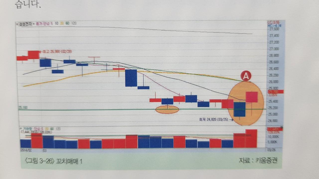 : 꼬치모양의 음봉이 만들어지고, 거래량이 많다면 저가매수세가 유입된 것으므로 다음 날 매수